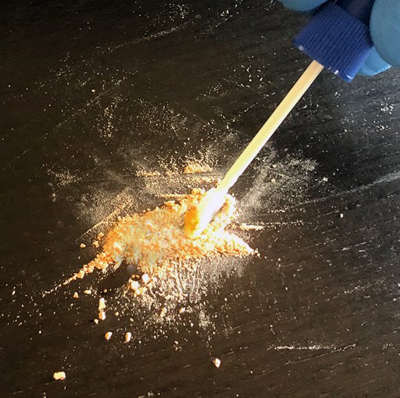 Simply swipe a small amount of the suspect material or paraphernalia. A simple swipe across the surface is enough for testing.